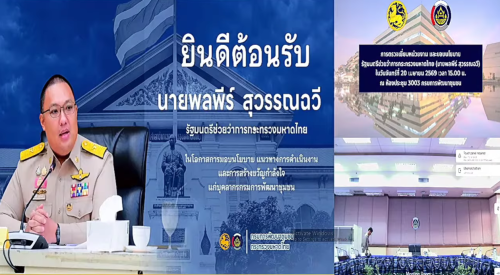 โดยมี นายสยาม ศิริมงคล อธิบดีกรมการพัฒนาชุมชน พร้อมด้วย รองอธิบดี คณะผู้บริหาร ผู้ตรวจราชการกรม และหัวหน้าส่วนราชการ บุคลากรทั้งในส่วนกลางและส่วนภูมิภาค ร่วมให้การต้อนรับและรับมอบนโยบาย ณ ห้องประชุม 3003 ชั้น 3 กรมการพัฒนาชุมชน และระบบประชุมทางไกล Video Conference TV พช. ในการประชุมครั้งนี้รัฐมนตรีช่วยว่าการกระทรวงมหาดไทย ได้มอบแนวทาง "เศรษฐกิจชุมชน.พลัส" เพื่อเพิ่มมูลค่าเศรษฐกิจชุมชนทุกมิติให้เป็นกลไกขับเคลื่อน GDP ของประเทศ โดยเน้นย้ำความสำคัญใน "4 เพิ่ม" ดังนี้